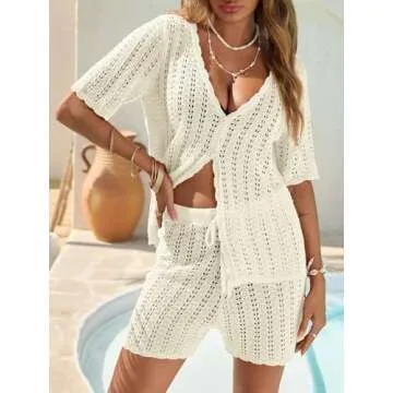 Show moreElevate your summer wardrobe with the Saodimallsu Womens Crochet 2 Piece Swimsuit Cover Up, an exquisite beach outfit designed to make you stand out wherever the sun shines. Crafted from 100% acrylic, this two-piece set not only looks stunning but also provides comfort for all-day wear. The lightweight and breathable fabric feel soft against the skin, perfect for keeping cool on those hot summer days. Its chic design includes a stylish high-waisted shorts and a short sleeve crochet cardigan, making it a versatile addition to your beach essentials.