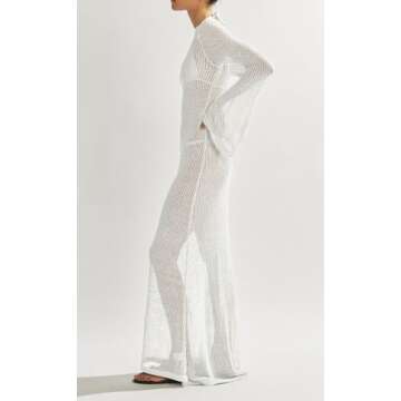 Saodimallsu Womens Crochet Cover Ups Long Sleeve Sexy Mesh Backless Knit Swimsuit Coverup Beach Maxi Dress White