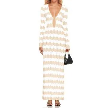 Saodimallsu Womens Crochet Summer Maxi Dress - Sexy Cut Out V Neck Long Sleeve Cover Up