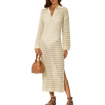 Show more Introducing the Saodimallsu Women's Crochet Swimsuit Cover Up - a quintessential addition to your summer wardrobe that combines elegance and comfort flawlessly. Crafted from a remarkably soft and skin-friendly material, this cover-up is not only lightweight but also provides a breathable fit, ensuring you stay at ease during those sun-soaked beach days. The intricate crochet detailing adds a touch of sophistication while the long sleeves and midi length offer a stylish silhouette that perfectly complements your bathing suit. Whether you're lounging by the ocean, sipping drinks poolside, or enjoying a day at the water park, this cover-up is designed to meet your every need, making it a must-have for your next vacation.