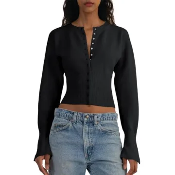 Show moreIntroducing the Saodimallsu Women's Cropped Sweater, a fashionable addition to your autumn and winter wardrobe that beautifully combines style, comfort, and versatility. Made from high-quality fabric, this sweater promises a soft touch against your skin, ensuring you stay warm without compromising on comfort. The cropped length with a trendy V-neck design makes it an eye-catching piece, perfect for pairing with high-waisted jeans or skirts for that chic look. Whether dressing up for a night out or keeping it casual, this button-down sweater has you covered.