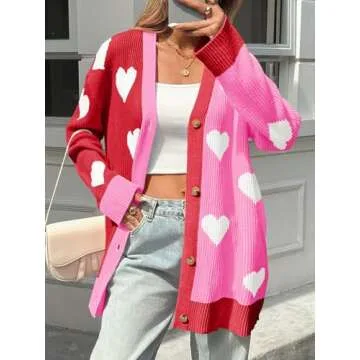 Saodimallsu Womens Heart Cardigan Sweaters Valentines Oversized Winter Color Block Button Up Cute Ribbed Sweater Coats