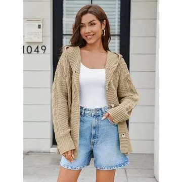 Show moreIntroducing the **Saodimallsu Women's Hooded Cardigan Sweater**, an essential layering piece that perfectly blends comfort and style. Crafted from high-quality cable knit fabric, this cozy cardigan is designed for the modern woman who embraces both fashion and functionality. Its open front design makes it easy to wear over any outfit, while the long sleeves provide warmth during those chilly fall days. Available in a stylish khaki color, this cardigan adds a touch of sophistication to your casual wardrobe. The trendy hood not only enhances its appeal but also offers practicality when the weather turns unexpected. With button-down closures that allow for easy adjusting, you can achieve the perfect fit while showcasing your unique style.