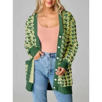 Saodimallsu Womens Houndstooth Sweater Dress Checkered Long Sleeve Oversized Button Casual Cardigans with Pockets Green