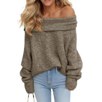 Saodimallsu Womens Off The Shoulder Sweaters Long Sleeve Slouchy Knitted Casual Loose Fall Trendy Pullover Tops