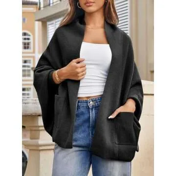 Saodimallsu Womens Open Front Cardigan Batwing Long Sleeve Shawl Chunky Knit Loose Fall Poncho Sweater Coats Black