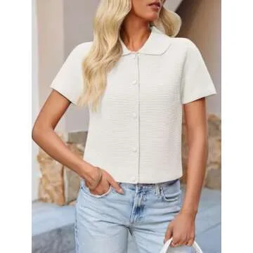 Show more If you're looking for that perfect addition to your warm-weather wardrobe, the Saodimallsu Womens Short Sleeve Cropped Cardigans is exactly what you need. Crafted from soft knitted fabric, this lightweight and breathable cardigan is designed for all-day comfort. Its short sleeve style makes it ideal for spring and summer outings, while the button-down front and Peter Pan collar add a lovely touch of femininity.