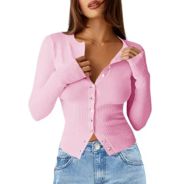 Show moreIntroducing the Saodimallsu Womens Slim Fit Cardigan Sweaters, a staple knitwear piece that seamlessly marries style with comfort. Designed for the modern woman, this sexy button crew neck cardigan is crafted from high-quality, breathable fabric that feels ultra-soft against the skin. As we transition into the cooler months, this cardigan stands out with its slim fit and ribbed knit design at the waist and cuffs, providing a flattering silhouette for any body type. With its open front style and long sleeves, this versatile piece is perfect for layering, making it a must-have addition to your fall wardrobe. Whether you choose the stunning pink or any other color from our selection, you'll find this cardigan is not just an article of clothing but a confidence booster for every occasion.