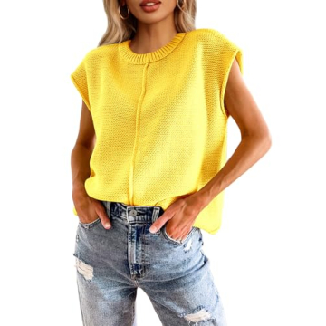 Show more Introducing the Saodimallsu Women’s Tank Top, a stylish and versatile addition to your summer wardrobe. This exquisite crew neck knit sweater is designed with a casual yet fashionable flair, perfect for enhancing your everyday look. Made with lightweight and soft fabric, this summer top embraces both comfort and breathability, ensuring you feel cool during hot weather. The cap sleeves add a touch of elegance while allowing for easy movement, making this top suitable for a variety of occasions. Available in a stunning yellow that brightens up any outfit, this pullover is a must-have for the season.