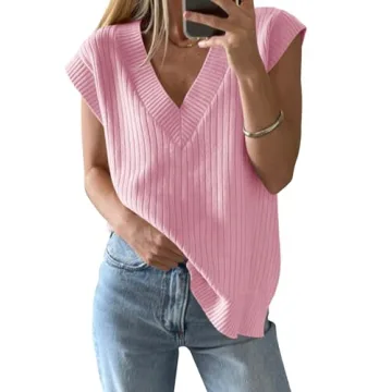 Discover the bliss of style and comfort with this enchanting sleeveless sweater vest, crafted from high-quality ribbed knit fabric. This lightweight and breathable piece is your perfect companion through the warm transitions of spring and summer into the cooler days of fall. Its super soft texture drapes effortlessly, making it a cozy choice for any casual outing. Designed with a deep V-neckline and a ribbed hem, this versatile pullover sweater vest effortlessly...