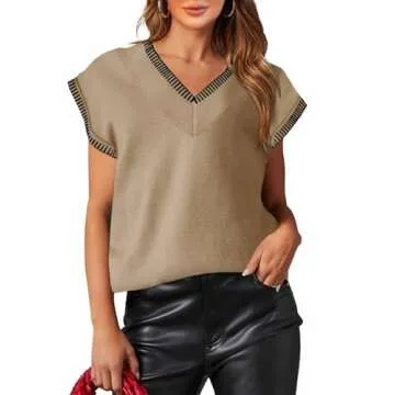 Step into effortless style with the Saodimallsu Womens V Neck Sweater Vest, a trendy addition to your summer wardrobe. This cap sleeve casual vest is designed with a comfortable loose knit, making it the perfect go-to piece for any occasion. Crafted from high-quality materials, the sleeveless pullover tank top exudes a laid-back vibe while ensuring breathability during those warm summer days. Its khaki color provides an earthy base that complements a variety of outfits, allowing...