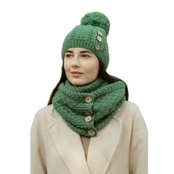 SAOL 100% Merino Wool Ireland St Patricks Gift Set Scarf and Hat for Women