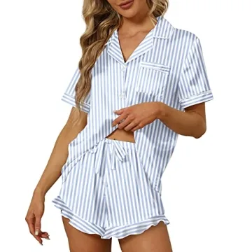 The accompanying ruffled shorts add a playful twist to the ensemble, crafted with a high elastic waist that not only highlights your waistline but also offers unmatched freedom of movement. Users rave about the adorable patterns and pleasant fit, ensuring that you look great while feeling cozy. These lovely pajamas come in a variety of colors, making SAPJON's satin set versatile enough for vibrant individual expression.