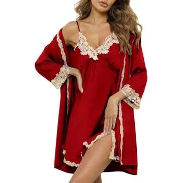 SAPJON Womens Pajama Sets 5PCS Silk Pajamas for women Cute Sleepwear Loungewear Satin Pajamas Sets for Women Soft Wine Red