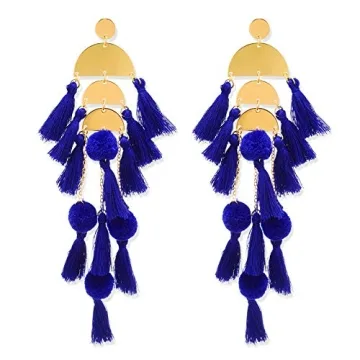 Sapphire Tassel Earrings Long Fringe Drop Bohemian Statement Earrings for Women Fashion (royal blue)