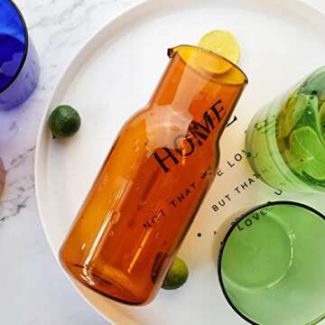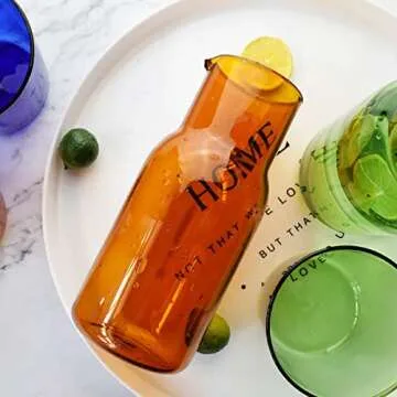 Sappiedear Bedside Glass Water Carafe Set with Cup, Glass Carafe with Lid Mouthwash Cups for Bedroom Bathroom Juice Wine Milk 19oz Amber