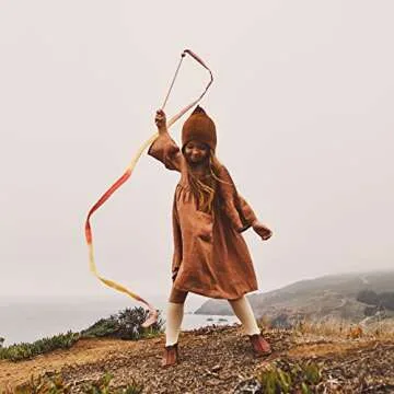 Sarah's Silks Boho Rainbow Streamer - 8' Long Ribbon Wand for Kids, Pretend Play, Dance, Baton Stick Twirling, and Gymnastics Party Favors | 100% Silk and Wood Montessori and Waldorf Toys (2)