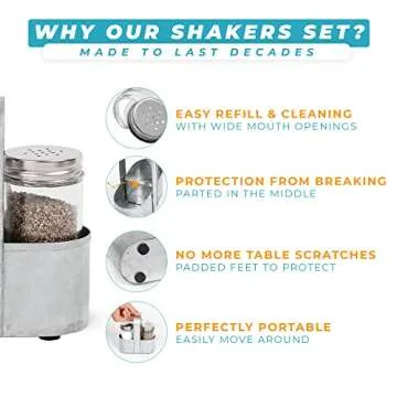 Whether you're hosting a dinner party or enjoying a casual meal with family, our salt and pepper shaker set combines style, durability, and convenience. Say goodbye to mismatched shakers that clutter your table and embrace a refined, cohesive dining experience!
