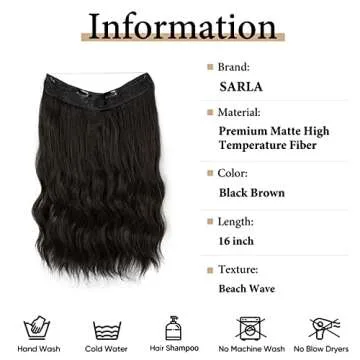 SARLA Invisible Wire Hair Extension with 3 Clips Synthetic Short Beach Wave Hairpiece Transparent Adjustable Headband for Women 16 Inch Black Brown