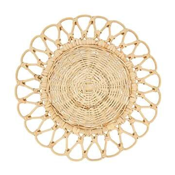 Show moreTransform your dining experience with the SARO LIFESTYLE Bandung Collection Cutwork Design Rattan Placemats. This exquisite set of four 15-inch natural rattan placemats brings an element of sophistication and artistry to your table setting. Each placemat features a unique cutwork design, providing not only a practical surface for your dinnerware but also an eye-catching centerpiece that enhances any dining occasion. The natural texture and warm tones of rattan provide the perfect backdrop for everything from casual family meals to elegant dinner parties. Crafted with quality and style in mind, these placemats are a must-have for any home.