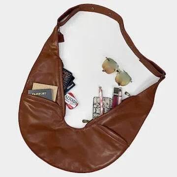 SASH Crossbody Bag - Brown Faux Leather Purse for Women - Travel Sling Bag with FRID-Protected Wallet