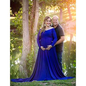 Saslax Maternity Off Shoulders Long Sleeve Half Circle Gown for Baby Shower Photo Props Dress Blue Large