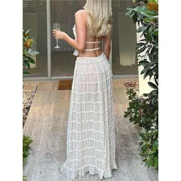 Sastianaen Women 2 Piece Maxi Skirt Set Y2k Lace Up Back Tank Top Flowy Ruffle Long Skirt Outfits Summer Going Out Beach Sundress (1-White,s), Small