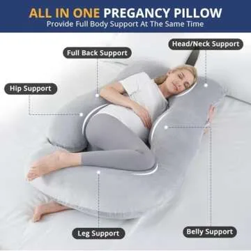 Sasttie Pregnancy Pillows for Sleeping, U Shaped Full Body Pillow for Side Sleepers, Maternity Pillow for Pregnant Women with Removable Velvet Cover, Pregnancy Must Haves, Grey