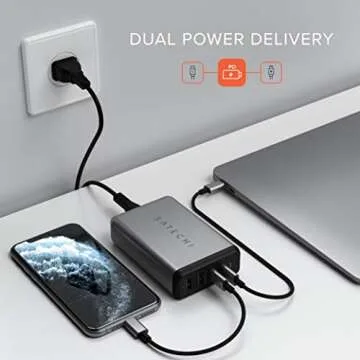 Introducing the Satechi 75W Dual Type C PD Travel Charger Adapter—your ultimate charging solution designed to keep all your essential devices powered up and ready to go. Whether you’re at home, in the office, or on the move, this powerful all-in-one charger simplifies your charging needs into one sleek, compact design. With the ability to simultaneously power up to four USB devices, boasting a total maximum output of 75W, you'll never have to worry about running out of...