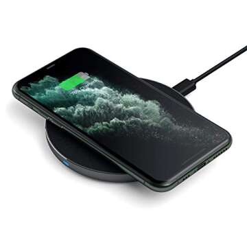 The charger's modern design boasts a slim profile that occupies minimal space, ensuring it is an unobtrusive addition to your desk or nightstand setup. Its contemporary aesthetic complements any smartphone or accessory, making it a must-have for tech lovers and minimalists alike. It’s even compatible with a wide array of Qi-enabled devices, such as the latest iPhone models, Samsung smartphones, and more, making it versatile for various users.