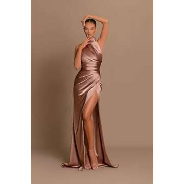 Satin Bridesmaid Dresses Long Slit Dusty Rose Ruched Wrap Mermaid Backless Formal Dresses for Women Size 8