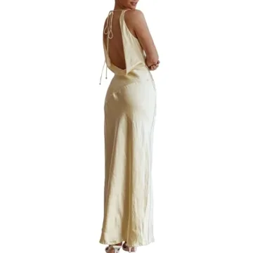 Elegant Satin Cowl Neck Backless Maxi Dress for All Occasions