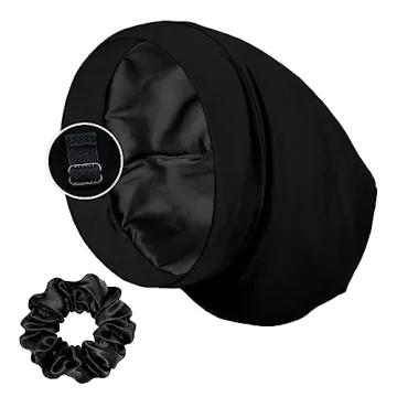 Show more Transform your bedtime routine with the Satin Lined Sleep Cap and Scrunchie, the ultimate solution for keeping your hairstyles intact while you sleep! Designed to stay on all night, this adjustable strap ensures that your hair bun, whether thick, long, curly, or straight, remains neatly wrapped and well-protected in your sleep. Experience peaceful nights free from the anxiety of waking up to disheveled hair and instead relish sleek and moisturized locks each morning. The unique satin lining not only reduces friction but also locks in moisture, preventing frizz and split ends whilst ensuring your style is safeguarded. Tailored for comfort, its hidden adjustable strap guarantees a snug fit without pinching or leaving marks, catering to most head sizes effortlessly.