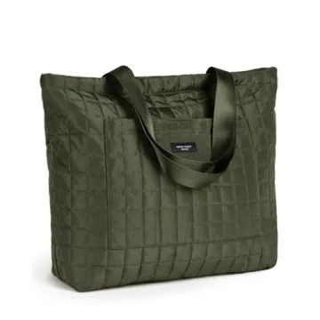SATIN SAINT Large Quilted Tote Bag, 35L Big Lightweight Tote Bag for Women Men Unisex, Carry-On Shoulder Bag Overnight Weekender Travel Bags, Yoga Gym Bag Totebag, Armygreen
