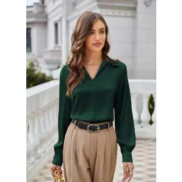 Show moreIntroducing the GRACE KARIN Women's Satin Silk Blouse, a chic and sophisticated addition to your wardrobe that perfectly balances style and comfort. Crafted from premium satin silk, this lapel V-neck long sleeve casual work blouse offers a luxurious feel with a lightweight yet breathable design that ensures you stay comfortable throughout your day. With its exquisite drape and elegant silhouette, this blouse is not just a piece of clothing; it's an expression of your fashion-forward nature.