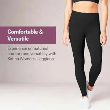 SATINA High Waisted Leggings for Women - Black Full Length Women's Leggings - Plus size