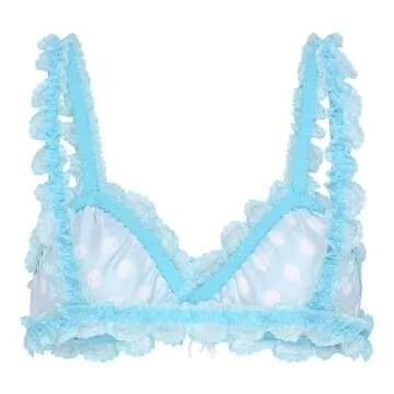 Satini Sissy Frilly Lace Fitted Satin Bralette (Aqua Blue - Polka Dots, XL)