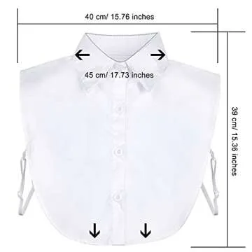 Show moreIntroducing the SATINIOR 3 Pieces Fake Collar – an innovative accessory designed to elevate your wardrobe. Made for the modern woman who appreciates both style and convenience, these detachable dickey collars come in a wide range of sizes, from medium to x-large, ensuring that every fashionista finds her perfect fit. Available in three elegant designs, this versatile set allows you to transform any outfit instantly, making it perfect for both casual and formal occasions. Just imagine, with a simple switch, you can upgrade a basic blouse or sweater into a sophisticated look without the need for a complete outfit change!