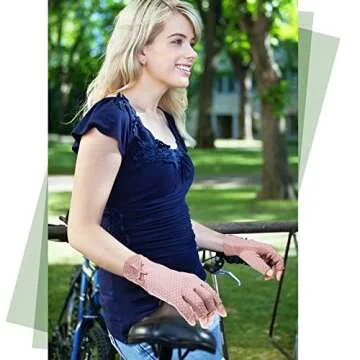 SATINIOR 4 Pairs Women Sunscreen Fingerless Gloves UV Protection Summer Sunblock Gloves for Driving, Medium(Lace and Bowknot)