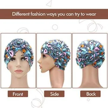 SATINIOR 4 Pieces African Pattern Headwrap Pre-Tied Bonnet Turban Knot Beanie Cap Headwrap Hat (Black Green Yellow Brown Flower)