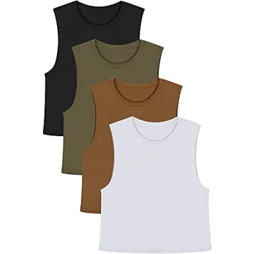 Show moreElevate your wardrobe with the SATINIOR 4-Piece Women's Basic Crop Tank Tops. This sleeveless racerback tank top set is designed for both style and comfort, making it a must-have for any fashion-forward individual. Crafted from a blend of cotton and spandex, these tank tops offer stretchability and breathability, ensuring you stay comfortable all day long. The classic colors - army green, white, brown, and black - provide versatility to match with any outfit, whether you're dressing up for a casual day out or gearing up for a workout session.