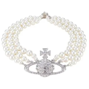 Show more Indulge in the elegance of our stunning Saturn Pearl Necklace, a delightful addition to any jewelry collection. Crafted with meticulous attention to detail, this exquisite piece combines high-quality artificial pearls and sparkling rhinestones to create a stunning visual effect. The captivating design features a celestial theme that symbolizes beauty and sophistication, perfect for any occasion or outfit. The use of durable zinc alloy ensures lasting wear while the clever choker style complements various necklines, making it a must-have accessory for fashion-forward individuals.