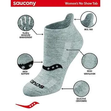 Saucony Women's RunDry Performance Heel Tab Athletic Socks, Available in S-L (8, 16, 24, Grey Basic (8 Pairs), Small