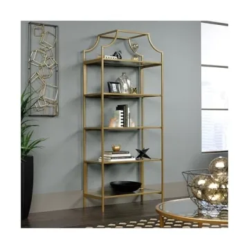 Sauder International Lux Bookcase - Elegant Storage Solutions in Satin Gold