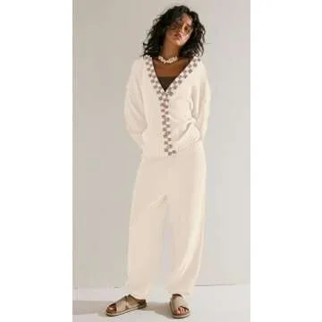 SAUKOLE Womens 2 Piece Sweater Matching Set - Oversized Cardigan and Baggy Pants