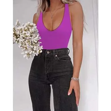 SAUNGKUAI Women’s Bodysuit Sexy Plunge Deep V Neck Backless Sleeveless Tank Thong Body Suits Outfits for Going Out Hotpink S