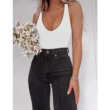 SAUNGKUAI Women’s Bodysuit Sexy Plunge Deep V Neck Backless Sleeveless Tank Thong Body Suits Outfits for Going Out