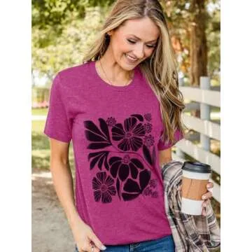 Savarana Women Vintage Wildflower Shirt Minimalist Floral T-Shirt