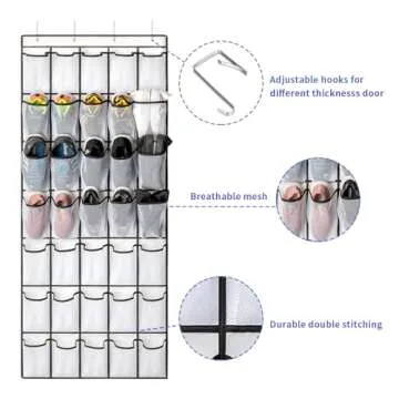 SAVERHO 35 Pockets Over the Door Shoe Organizer, Hanging Shoe Organizer for Door with 35 Mesh Pockets Large Capacity Shoe Hanging Storage Bag with 4 Metal Hooks (White-1Pack)