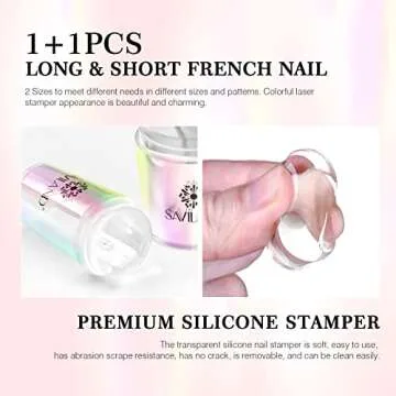 What sets the Saviland French Tip Nail Stamp Kit apart from other nail stamping kits is its dual-stamper design, featuring options for both long and short nails. While many competitors offer single-sized stampers, Saviland’s flexibility caters to a wider audience. Additionally, the upgraded silicone material ensures maximum durability and comfort that is often lacking in other brands, where stampers can degrade over time. This thoughtful design promotes a smooth and enjoyable stamping experience, giving you the best bang for your buck.
